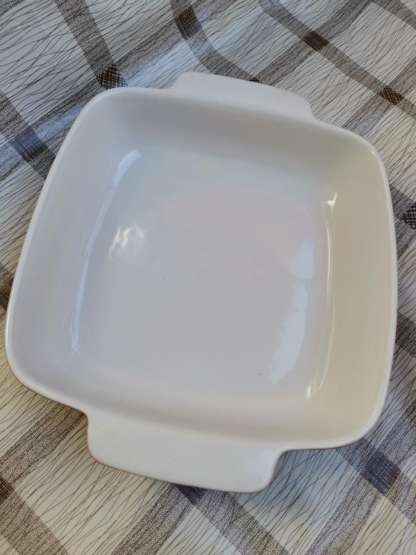 Продам квадратную керамическую форму для запекания Pyrex Signature 22*22 см. Качественный материал, толстые стенки способствуют равномерному прогреву блюд, керамическое покрытие уменьшает пригорание и относительно легко очищается, если порвнять, например, с металлическими или стеклянными формами. Стан идеален, нет ни сколов, ни царапин, чистая. Замер по дну около 22 см*22 см, замер по конькам около 25см*25 см, глубина 5 см, ручки примерно 3 см. По размеру подходит для лазаньи. Вместительная форма и при этом не сильно большая, что позволяет достичь хорошего пропекания всего блюда.