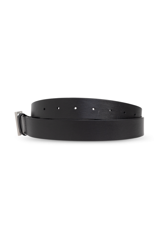 Introducing the Leather Belt by MM6 Maison Margiela, an epitome of refined elegance and avant-garde design. This exquisite belt is crafted from luxurious calfskin leather, exuding timeless sophistication. The belt is adorned with a sleek, silver-toned rectangular metal buckle, which infuses a contemporary flair into its classic silhouette. Its dominant black hue ensures versatility, making it a quintessential addition to any formal or elegant ensemble. Designed with practicality in mind, this belt features multiple holes for adjustable fit, ensuring optimal comfort and style. The discreet logo embossed on the inner side is a subtle nod to its designer heritage. Why Choose This Product? Expertly crafted from premium calfskin leather. Features a modern silver-tone metal buckle. Offers adjustable fit for personalized comfort. Part of an exclusive collection from MM6 Maison Margiela.