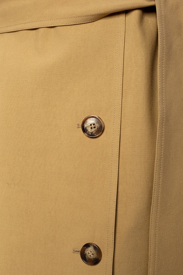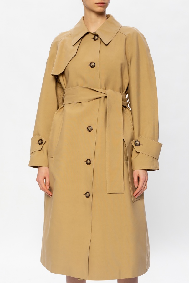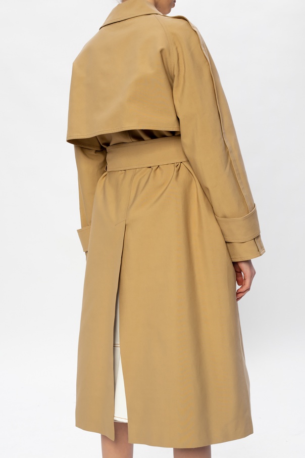 Beige trench coat from Victoria Beckham. Crafted from crisp cotton fabric, this style fastens via buttons and features a wide-spread collar, belted waist, two welt pockets on the sides and a single vent on the back.