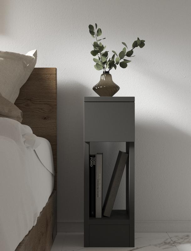Приліжкова тумба вузька з одним ящиком без ручки 📚
