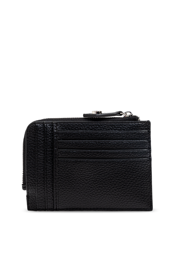 Introducing the Vivienne Westwood Black Card Holder, a masterpiece from the exclusive collection of the renowned fashion house. This exquisite card holder exudes sophistication with its grain-textured leather exterior, offering a luxurious touch to any ensemble. The dominant black hue is elegantly contrasted by the brand\'s silver logo on the front, a symbol of elegance and prestige. Its thoughtful construction includes multiple card slots and a zippered coin pocket, enhancing its functionality while maintaining a sleek profile. Designed as a unisex accessory, this card holder caters to both men and women, making it a versatile choice for any wardrobe. Its compact dimensions and practical layout make it perfect for everyday use, seamlessly combining style and utility. Why Choose This Product? Crafted from luxurious grain-textured leather. Features a secure zippered coin pocket and ten card slots. Unisex design suitable for all. Signature silver logo for added elegance. Compact and practical for daily use.