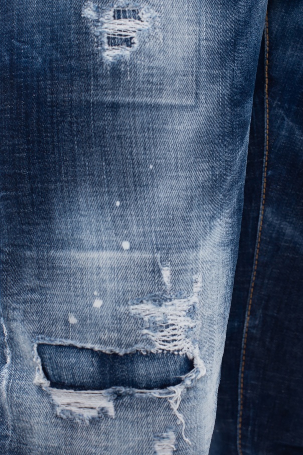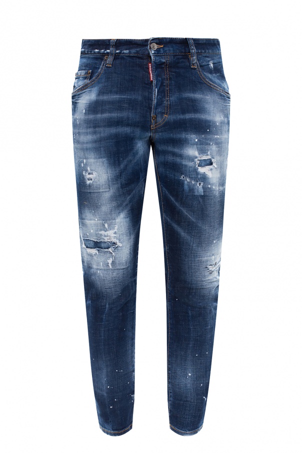 Blue ‘Skater Jean’ jeans from Dsquared2. Offering distressed effects, this pair features button fastening, 5-pocket design, a logo patch and straight legs.