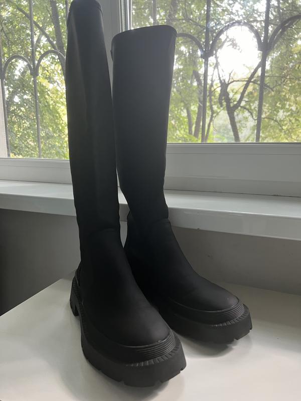 Высокие резиновые сапоги, ботфорты от Zara. Полномерные.