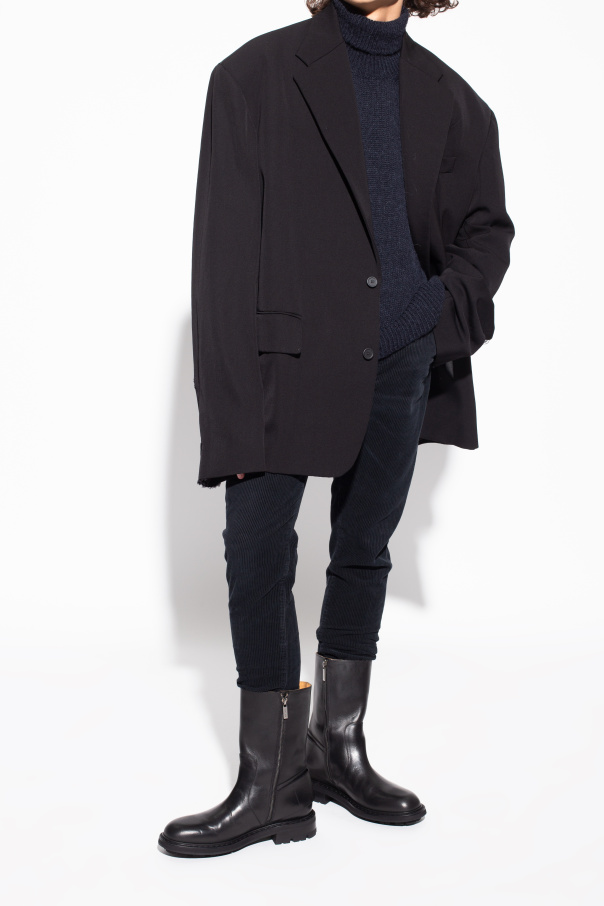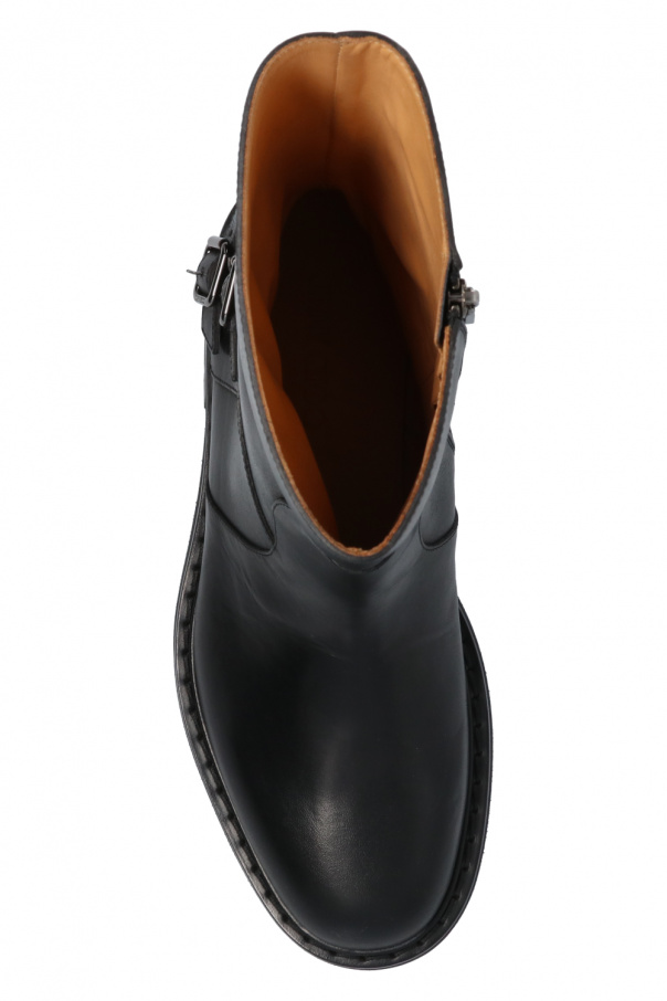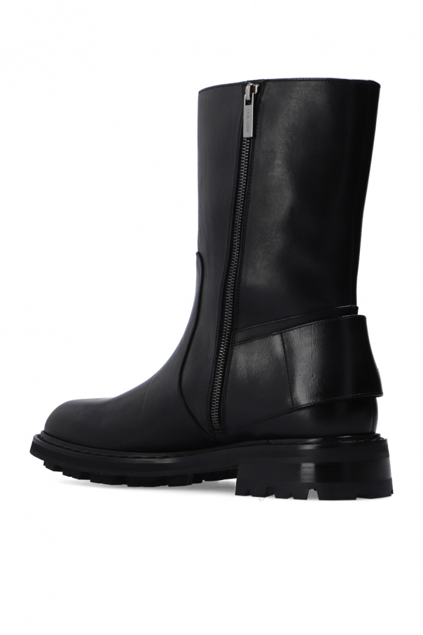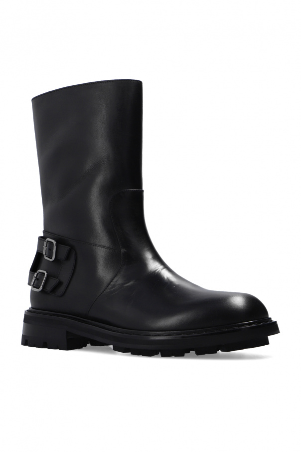 Black ‘Roscoe’ shoes from Jimmy Choo. Crafted from leather, this pair features a side zip fastening, decorative straps with silver-tone logo-embossed buckles and a black rubber sole.