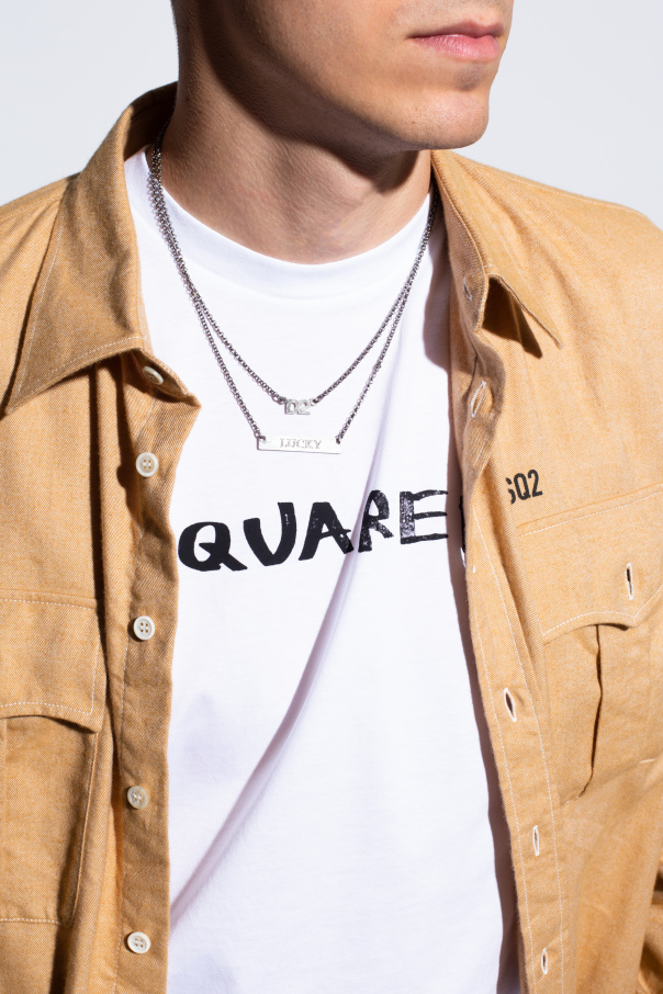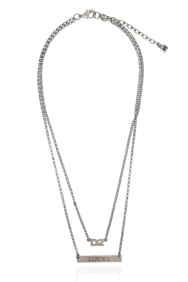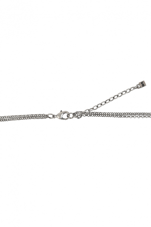 Antiqued silver-tone necklace from Dsquared2. Made of brass and tin, this item showcases logo-embossed charms.