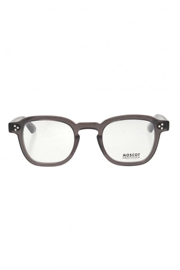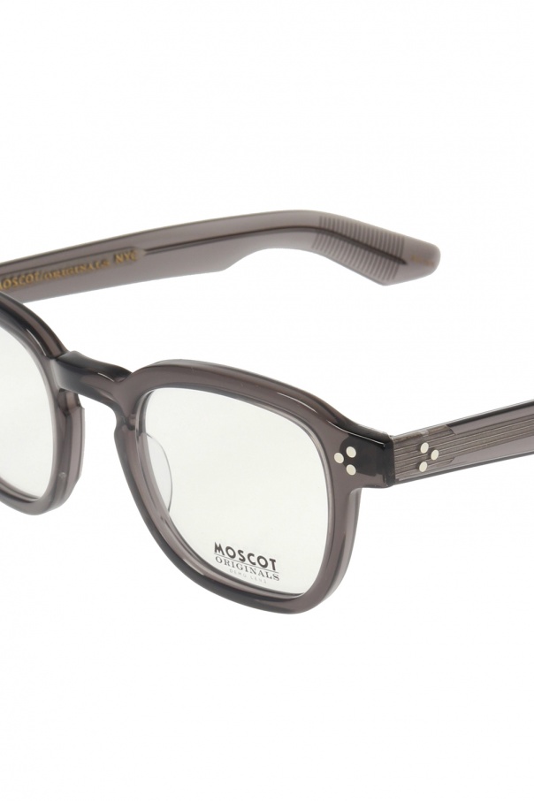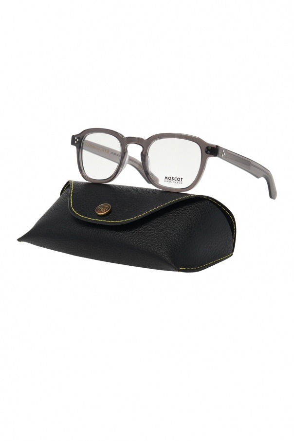 Grey ‘Momza’ optical glasses from Moscot. Decorated with a black logo print. This item comes with a black case enriched by yellow stitching details.