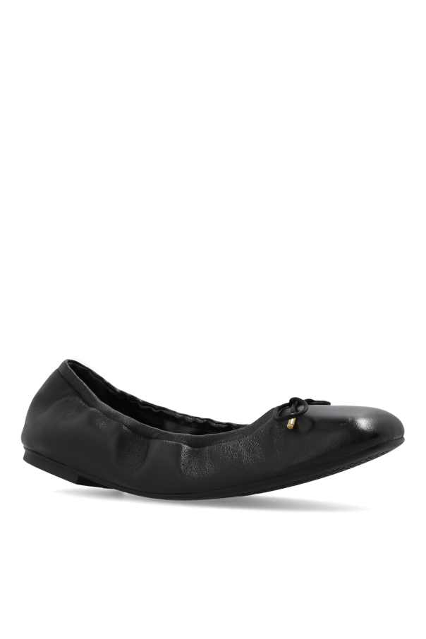 Black ‘Bardot’ ballet flats from Stuart Weitzman. Made of leather, this model sits on a black rubber sole and showcases a bow on the front.