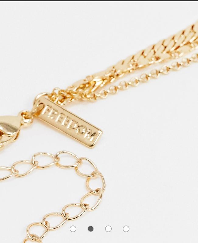 Три слоя, тройная цепочка topshop (freedom) Самая длинная цепочка состоит из двух простых пластинчатых подвесок, средняя цепочка украшена крестиком, а самая короткая представляет собой изящную цепочку-змейку без подвесок и оборок. Все три цепи соединены друг с другом – поэтому ничего не может соскользнуть. Он также регулируется по длине с помощью дополнительных петель и карабинаСостояние: ИдеальноеЦвет:- Золотистый