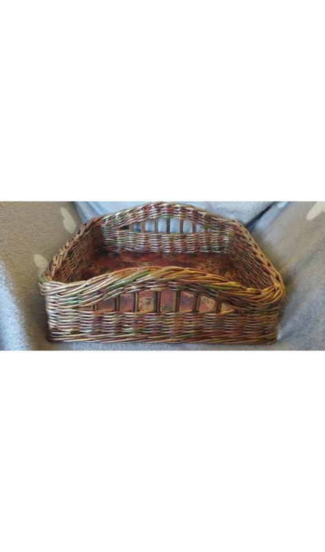 Удивительная корзинка из газетных трубочек, которая пригодится каждой хозяйке в доме. У корзинки прочное дно и выполнен декупаж, все материалы на водной основе. Она подойдет как для хранения хлеба, так и фруктов или для чего угодно. Замеры: высота дна - 29,5 см на 25,5см, высота нижней части - 8см, высота где по выше - 11 см. На все вопросы отвечу, также могу выполнить такую же в любом цвете)