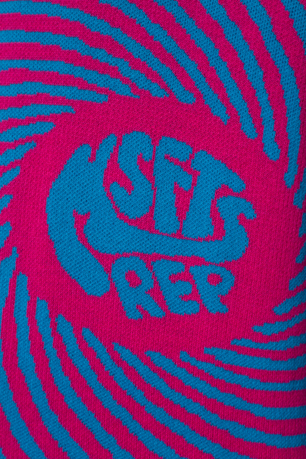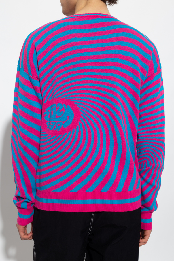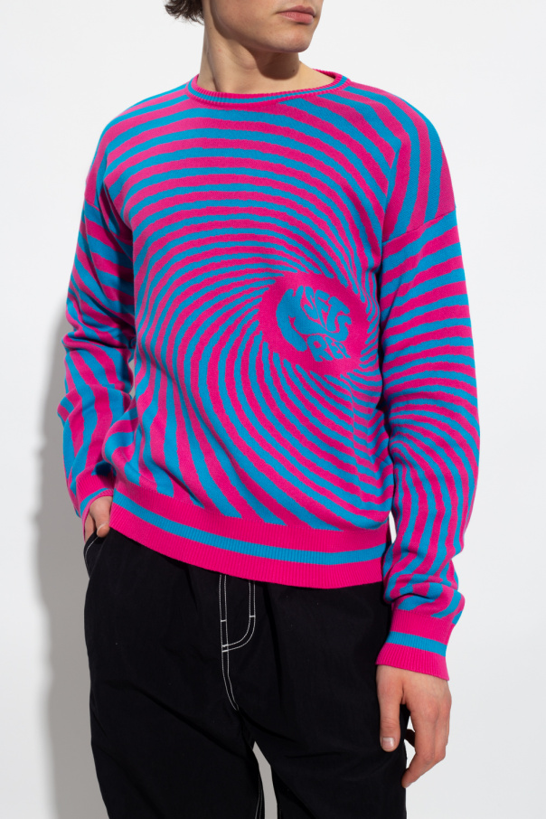 Pink and blue sweater from MSFTSrep. Crafted from cotton, this round neck design features a logo embroidery, spiral stripe pattern and striped ribbed trims at the neck, hem and cuffs.