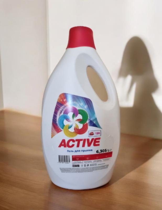 6.3 л гель для цветной одежды,на 126 стирок.Украинский производитель. Качественный,гарно пере, угодает на долго.