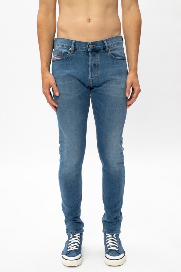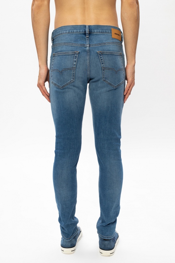 Light blue ‘D-LUSTER’ jeans from Diesel. Fastened with buttons and a zip, this pair falls down with straight legs and is complete with a black logo patch and five slip pockets.