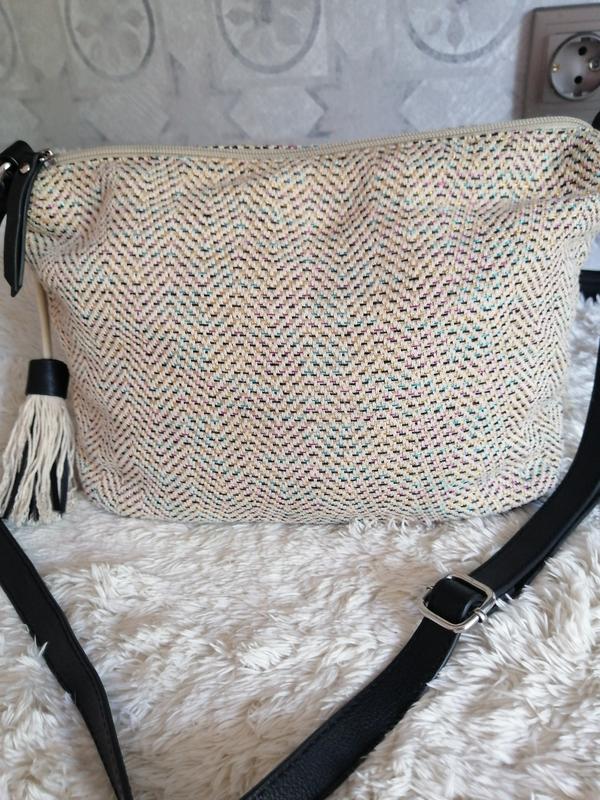Стильная летняя сумочка из плотной ткани с вкралениями люрекса. Вместительная, состояние новой. Размер 30Х22см.,ширина дна 12см. Внутри 1 большое отделение на змейке
