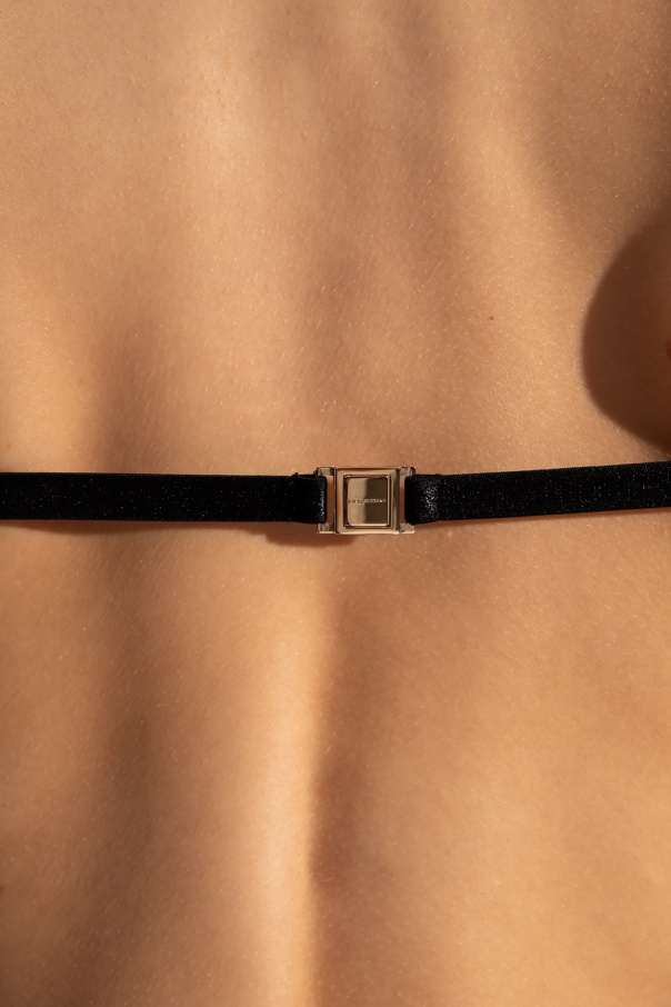 Black mini dress from Dolce & Gabbana. Distinguished by a denuded back, this style features a round neck, long sleeves and a gold-tone hook fastener with an embossed logo on the back.