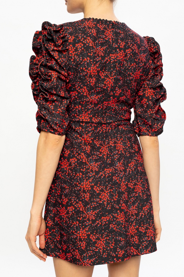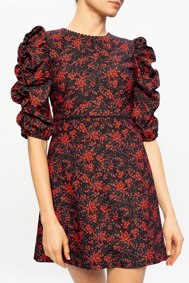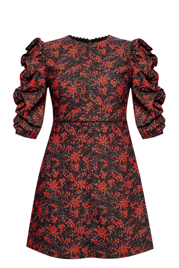 Black dress from See By Chloé. Fastened with a back zip, this design features a red and blue pattern and sleeves enriched with gathers and ruffles.