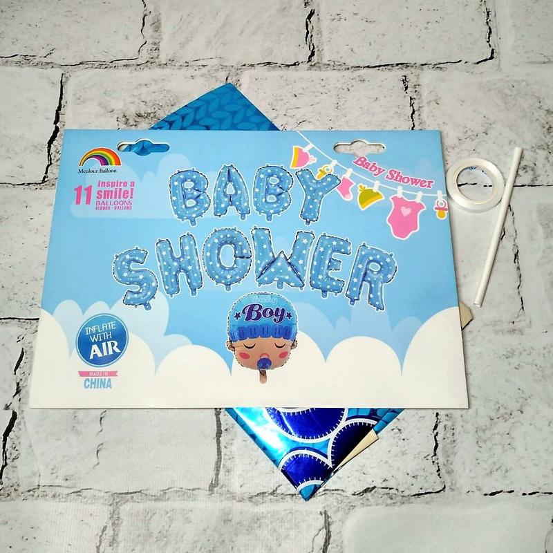 Набор воздушных фольгированных шаров Baby Shower, голубого цвета. Декор для праздника или тематической фотозоны.