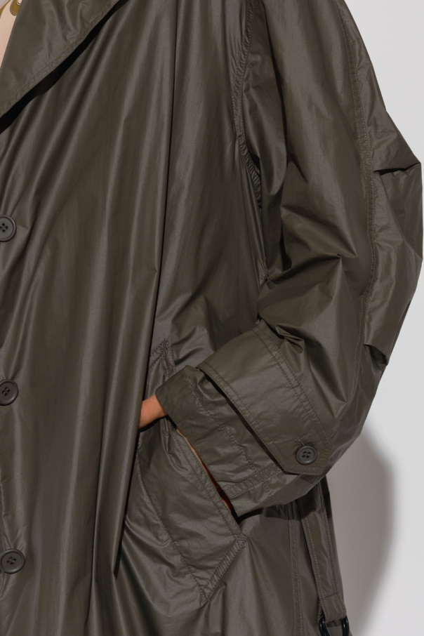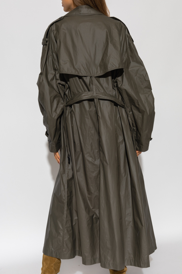 Dark green ‘Edge’ coat from Isabel Marant. Fastened with buttons and an adjustable waist belt, this design features a collar with snap and hook fastenings, storm flap, buttoned epaulettes, two slip pockets, single rear vent and long sleeves with buttoned cuffs.