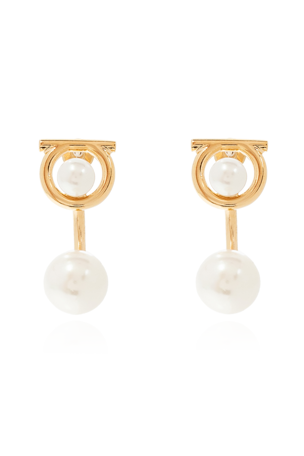 Gold-tone earrings from Salvatore Ferragamo. Featuring Gancini design, this unique piece of jewellery was embellished with dazzling pearls.