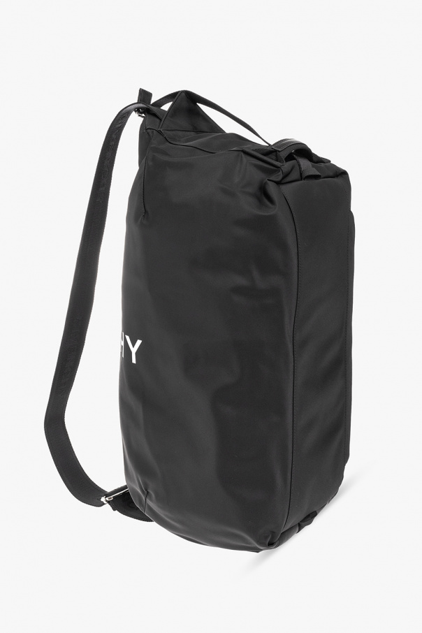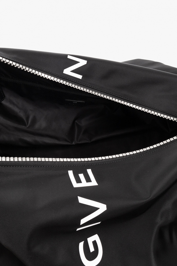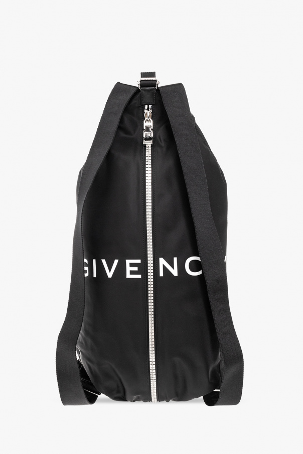 Black ‘G-Zip’ backpack from Givenchy. Fastened with a zip, this garment features a logo print, zipped back pocket, two half-round handles, adjustable shoulder straps, gold-tone metal hardware and one internal compartment with one zip pocket.
