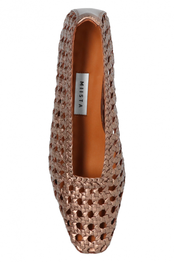 Brown ‘Taissa’ pumps from Miista. Woven from leather with a metallic sheen, this pair sits on a beige leather sole.