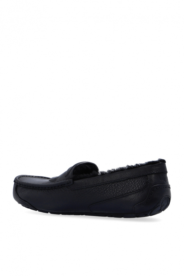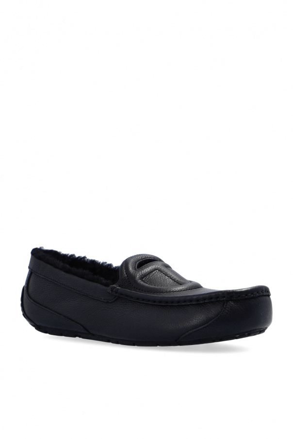 Black loafers from UGG X Telfar. Made of leather, this model sits on a black EVA sole and features a decoratively cut-out front with a raised logo and tonal UGGpure™ lining.