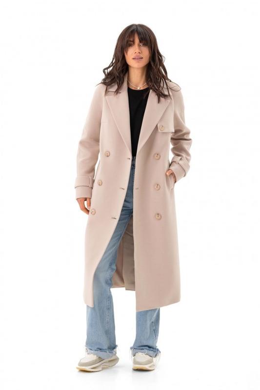Зроблено в Україні?:Виробництво ,Матеріал:Кашемір , Вовна ,Довжина виробу:Довгі ,Особливості моделі:Без хутра , Без капюшона , З кишенями , З поясом ,Вид пальта:Двобортні ,Сезон:Осінь , Весна , Демісезон ,Утеплювач:Без утеплювача ,Принт:Без принту ,Опис