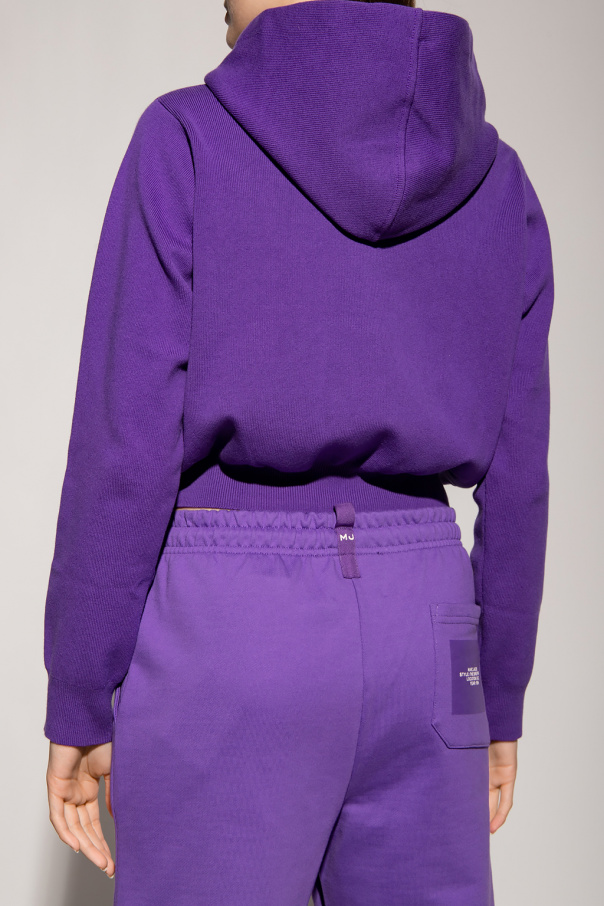 Purple sweatshirt with a drawcord-adjustable hood from Marc Jacobs. Made of cotton jersey, this style features a zip fastening, a light purple logo pattern, two slip pockets and an elasticated bottom hem and cuffs.