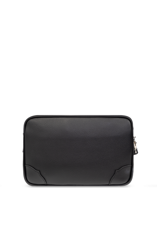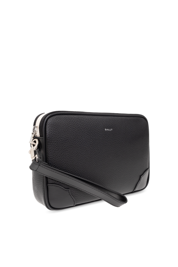 Black ‘Board Quick’ handbag from Bally. Made from leather, this design fastens via a cream zip and features a silver-tone logo on the front. It is complete with a detachable wrist strap, silver-tone metal hardware and one internal compartment with one slip pocket and one zip pocket.