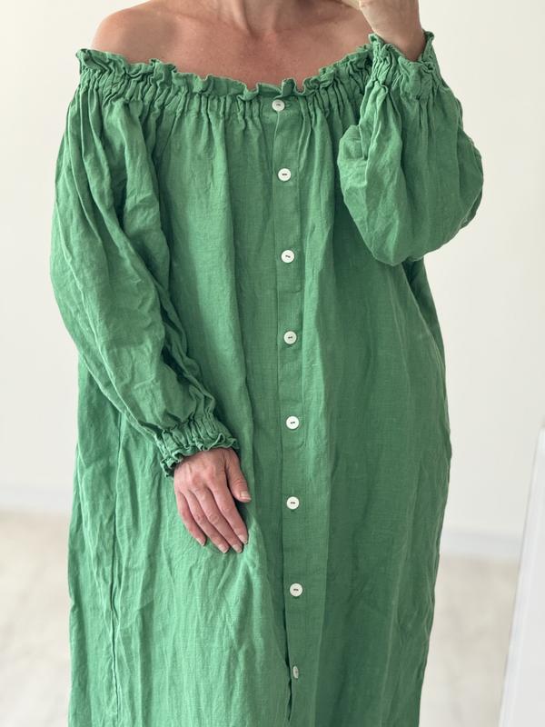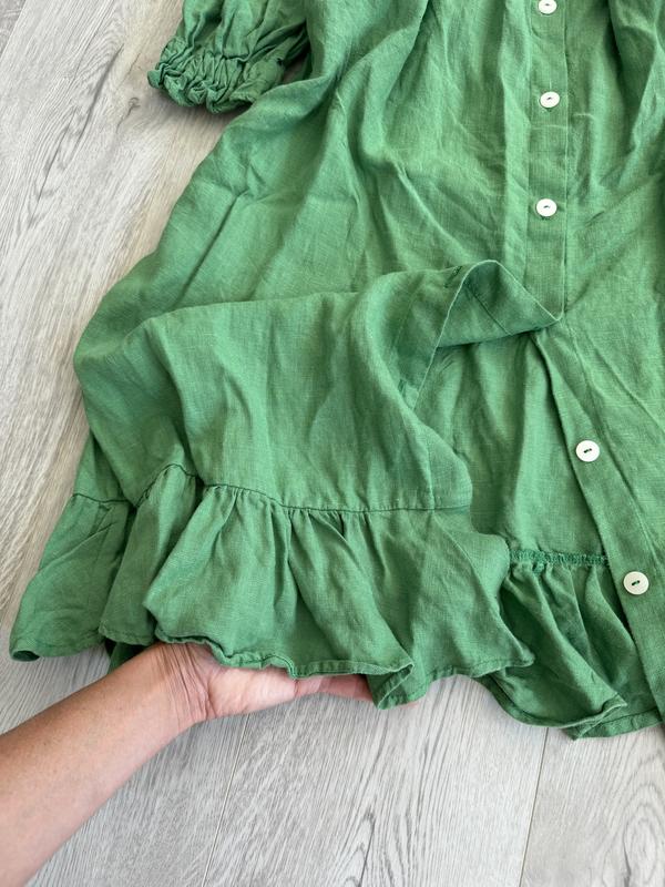 Плаття сукня сарафан Zara льон лляне, плотна тканина, не світиться. Довжина 119 см, якщо спускати на плечі, то розраховуйте, що буде довше, ПОГ 65 см, ПОБ 68 см, рукав від шиї 55 см, зріст моделі 165, вага 55 кг