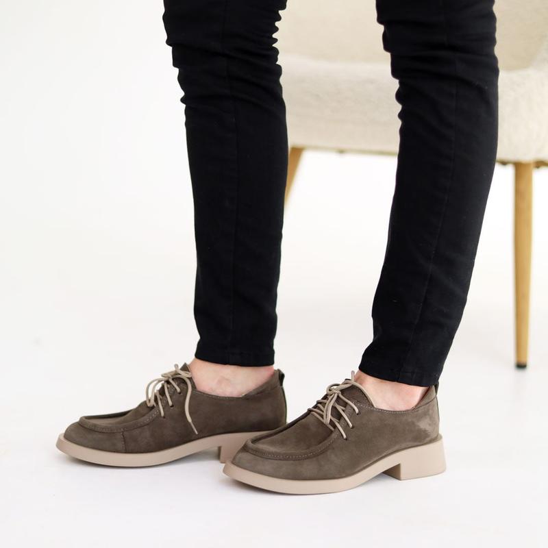 41 размер 26 смСтильные туфли женские замшевые серые/бежевые на плоской подошве без каблука Деми, демисезонные осенние, веснушки (осень-весна 2022-2023), удобные, комфортные, мягкие