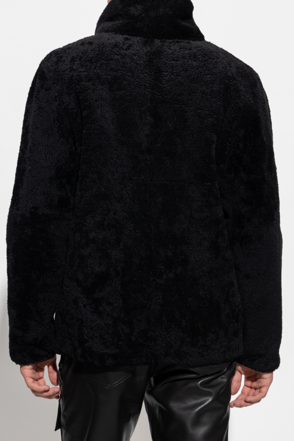 Black jacket from Yves Salomon. Crafted from lamb fur, this style features a front zip fastening, three zip pockets, a drawcord-adjustable hem and long sleeves with elasticated cuffs.