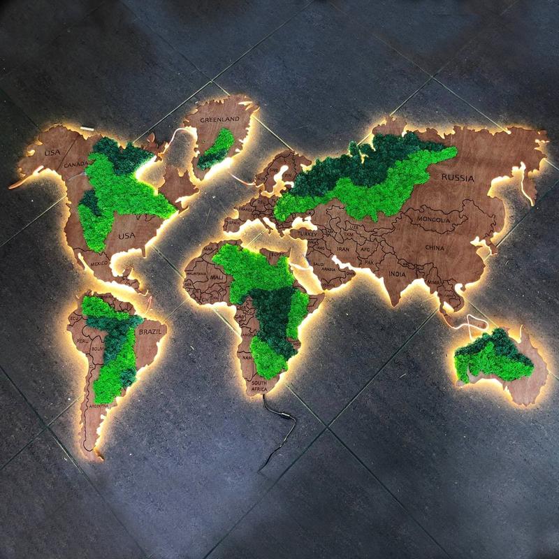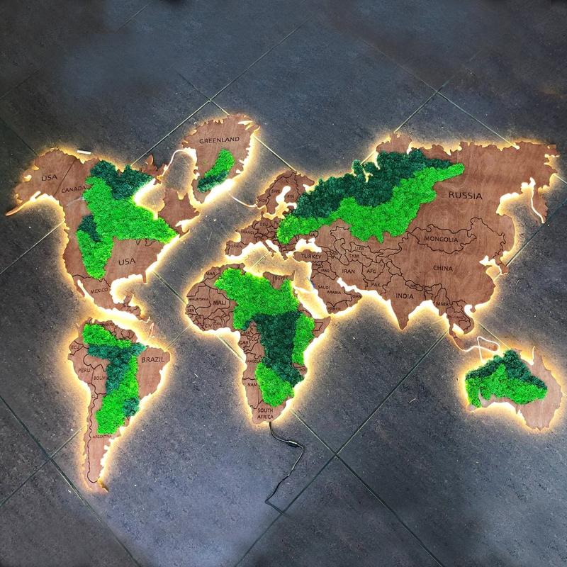 неповторимый шарм и сделает ее прекрасным дополнением любого интерьера.Также наша карта имеет стабилизированный мох, что добавляет карте