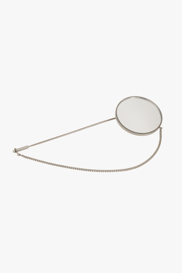 Silver-tone brooch with a chain and round mirror from MM6 Maison Margiela. Made of brass.