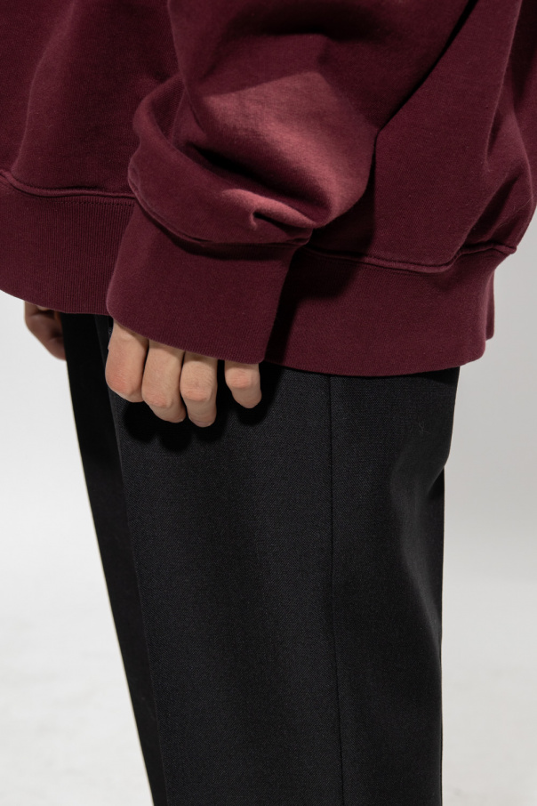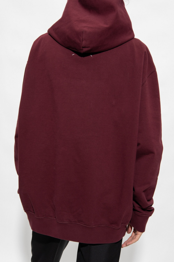 Maroon hoodie from Maison Margiela. Crafted from cotton jersey with an oversize silhouette, this style features tonal logo embroidery on the front, long sleeves and an elasticated bottom hem and cuffs.