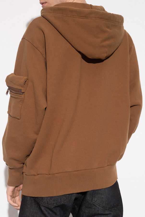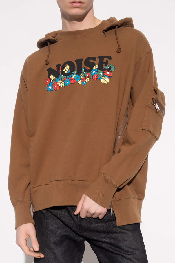 Brown sweatshirt from Undercover. Crafted from cotton jersey, this style showcases a detachable drawstring hood, a colourful floral print accompanied by zip vents on the front, a zip pocket and slip pocket on the sleeve and ribbed trims on the bottom hem and cuffs.