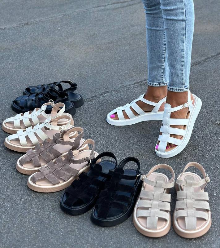 Материал:Замша , Кожа ,Высота каблука:Низький ,Вид:С закрытым носком ,Застежка:Ремешок ,Сезон:Лето ,Стиль:Повседневный ,Тип подошвы:Танкетка ,Форма носка:Круглый ,Описание