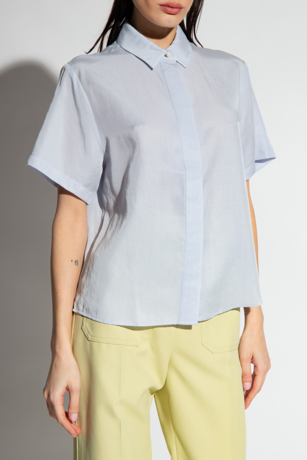 Light blue ‘Mina’ shirt from Samsoe Samsoe. Made of TENCEL™, this short sleeve design fastens with buttons with a concealed placket.