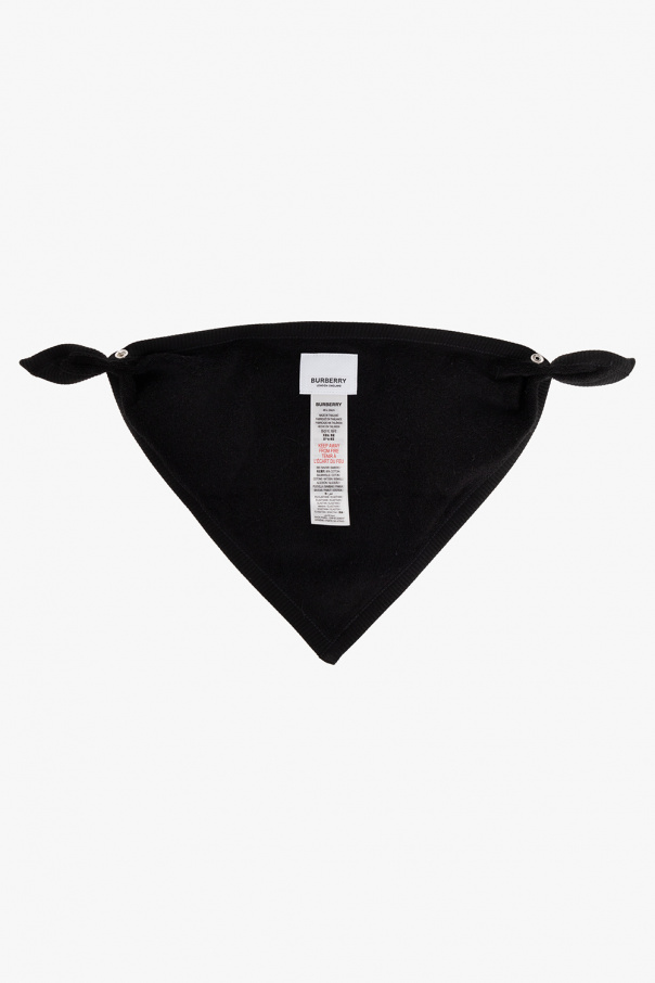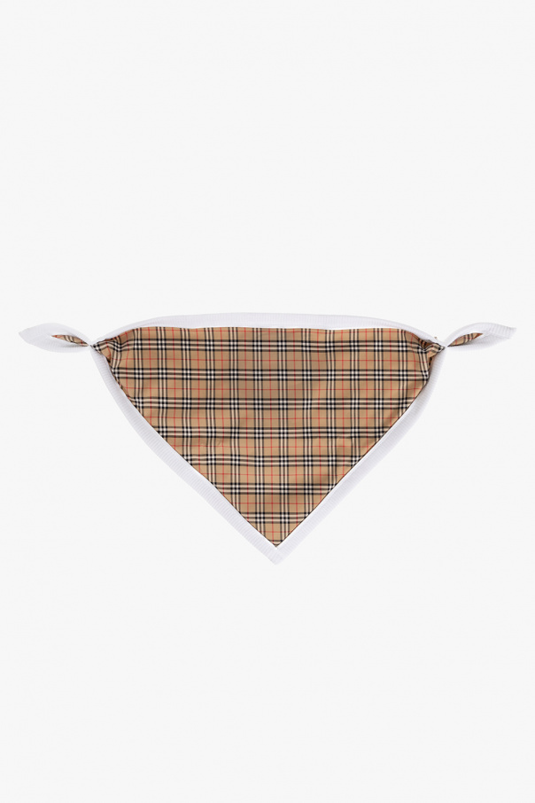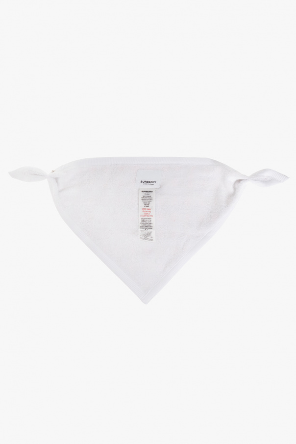 Beige ‘Camryn’ bib from Burberry Kids. Made of absorbent cotton towelling, each item features the brand’s signature multicolored check pattern, snap fastening and trimming in white and black.