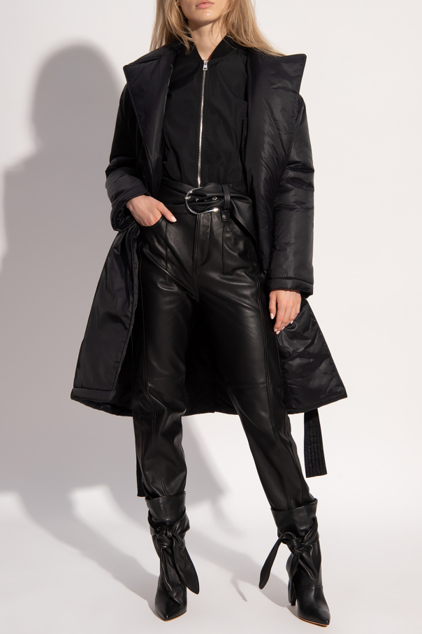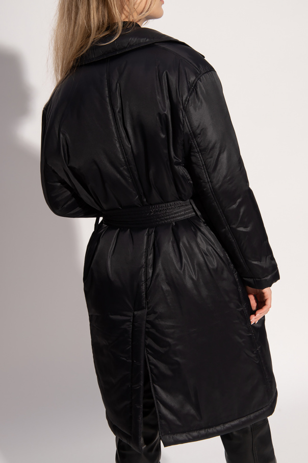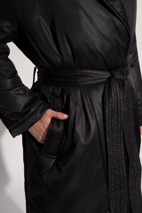 Black down coat from Red Valentino. Cinched at the waist, this style features notch lapels, two slip pockets and a single back vent.