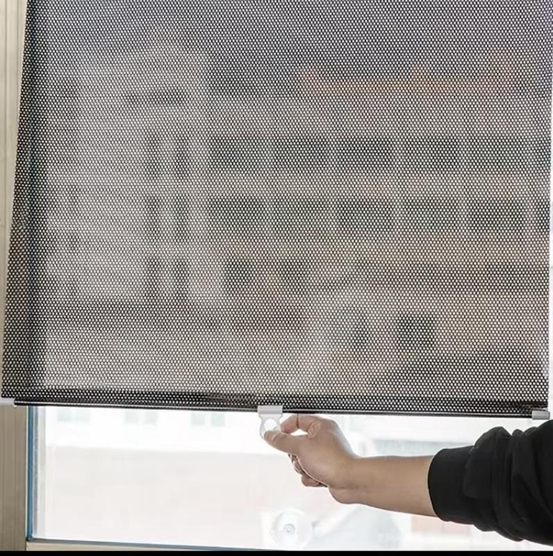 Продам сонцезахисну штору -ролет на присосках.Незамінна річ в спекотні дні для дому або в автомобілі.Заміри на фото.Матеріал пластикова плівка,стержень з металуКолір срібло і чорний. По 1шт.Перешлю.Дивіться мої оголошення.