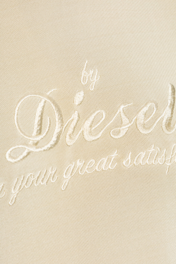 Light beige ‘F-REGGY’ crewneck sweatshirt from Diesel. Crafted from material with a glossy finish, this style features an embroidered logo on the front and ribbed trims on the collar, bottom hem and cuffs.