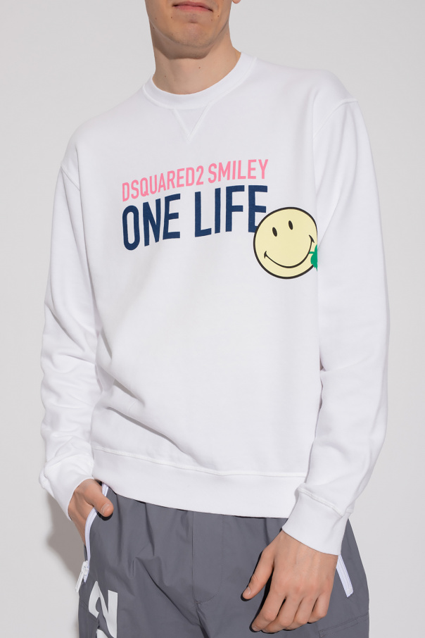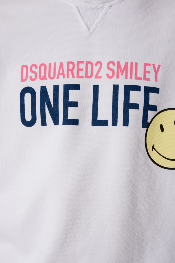White T-shirt from Dsquared2 x Smiley®, the ‘One Life One Planet’ capsule collection. Made of naturally dyed organic cotton with the GOTS certificate, this short sleeve design features a Smiley® print, red lettering at the back and ribbed crew neck.