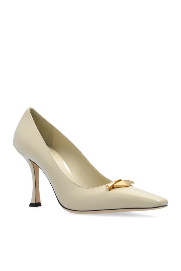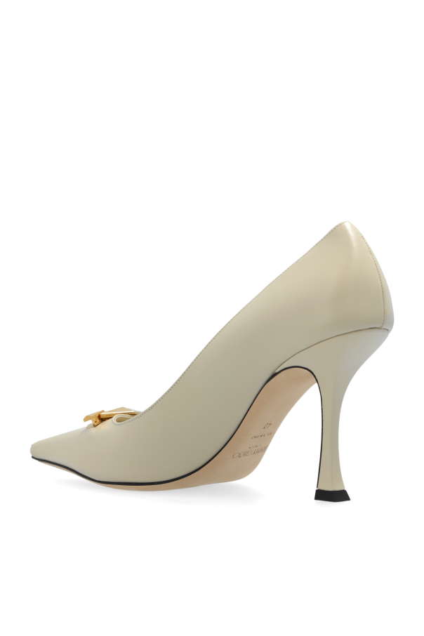 Introducing the exquisite ‘Ryker’ Heels from the illustrious designer Jimmy Choo. These timeless beige pumps epitomize elegance and sophistication, making them a quintessential addition to any discerning wardrobe. Crafted from the finest smooth leather, both the exterior and interior of these heels exude luxury. The classic pointed-toe design and gracefully tapered mid-height heel enhance the feminine silhouette, ensuring a poised and stylish look. Attention to detail is paramount, evidenced by the striking gold-toned bow adorning the front, adding a touch of opulence. The insoles feature the designer’s logo, reinforcing their authenticity and high-end appeal. The versatile beige hue makes these heels a perfect match for various ensembles, from formal attire to evening wear. As showcased in our photos, pairing these shoes with a satin dress in a rich brown shade highlights their adaptability and flair. Why Choose This Product? Superior Craftsmanship: Made from premium leather for a luxurious feel and durability. Elegant Design: Classic silhouette with a refined, slightly tapered heel. Exclusive Detailing: Features a gold-toned bow and designer logo insoles for added sophistication. Versatile Color: The beige tone complements a wide range of outfits and occasions. Renowned Designer: Created by Jimmy Choo, a leader in high-fashion footwear.