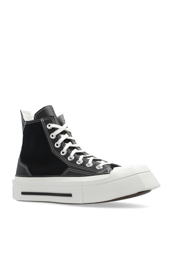 Black and white ‘Chuck 70 De Luxe Squared’ high-top sneakers from Converse. Made from fabric and faux leather, this lace-up model sits on a brown, white and black rubber platform sole and showcases a square toe, geometrical details for a dynamic new look, angular eyelets, overlays as well as a logo patch and OrthoLite cushioning to help provide comfort.