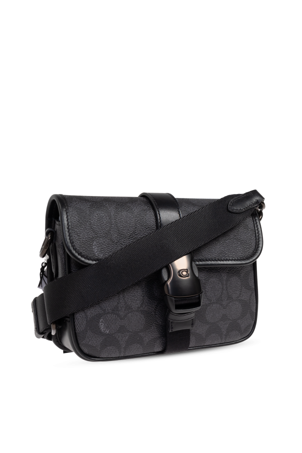 Introducing the epitome of refined luxury, the Coach Monogram Shoulder Bag. Exquisitely crafted in a striking black hue, this bag features a distinguished monogram pattern. Its rectangular form offers both practicality and compact elegance, ideal for daily use. Constructed from premium leather and canvas, this bag boasts a robust, wide shoulder strap for unparalleled comfort. The sophisticated metal clasp, adorned with a decorative \"C,\" elevates its opulent appeal. Inside, the bag reveals a spacious interior with a dedicated pocket, ensuring meticulous organization of your essentials. The meticulous attention to detail and superb craftsmanship underscore its quality, making it a quintessential accessory for those who appreciate both elegance and utility. Why Choose This Product? Signature monogram design by Coach, a hallmark of American luxury. Spacious interior with additional slip pockets for optimal organization. Sturdy and comfortable strap for ease of wear. Exquisite metal clasp adds a touch of luxury. Meticulously crafted with premium materials.