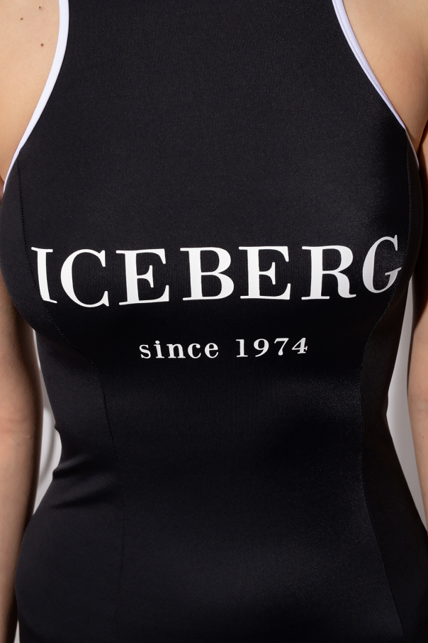 Black and white slip dress from Iceberg, the ‘Beachwear’ collection. Cut with a body-fitting silhouette, this style features a round neck and a printed white logo.