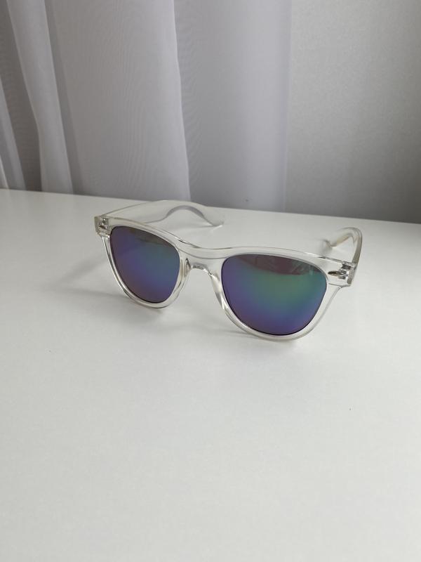 Продам стильные очки в пластиковой прозрачной оправе с зеркальными сине-зелеными линзами.