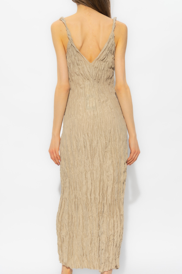 White slip dress from Toteme. Made of silk with pleats, this style features a V-neckline and creases.
