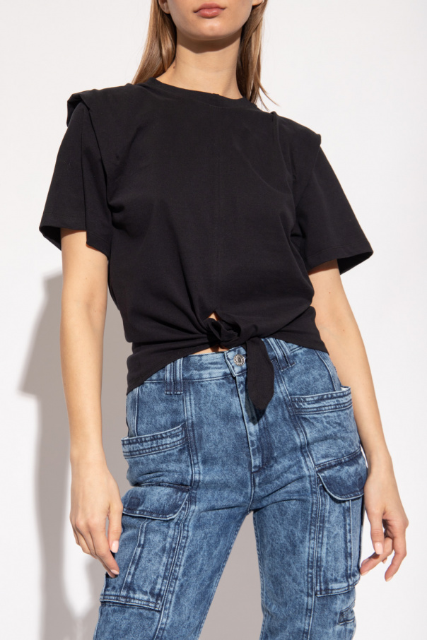 Black ‘Zelikia’ T-shirt from Isabel Marant. Crafted from cotton, this garment features decorative stitching details, vents on the sides, pleated shoulders and ribbed crew neck.