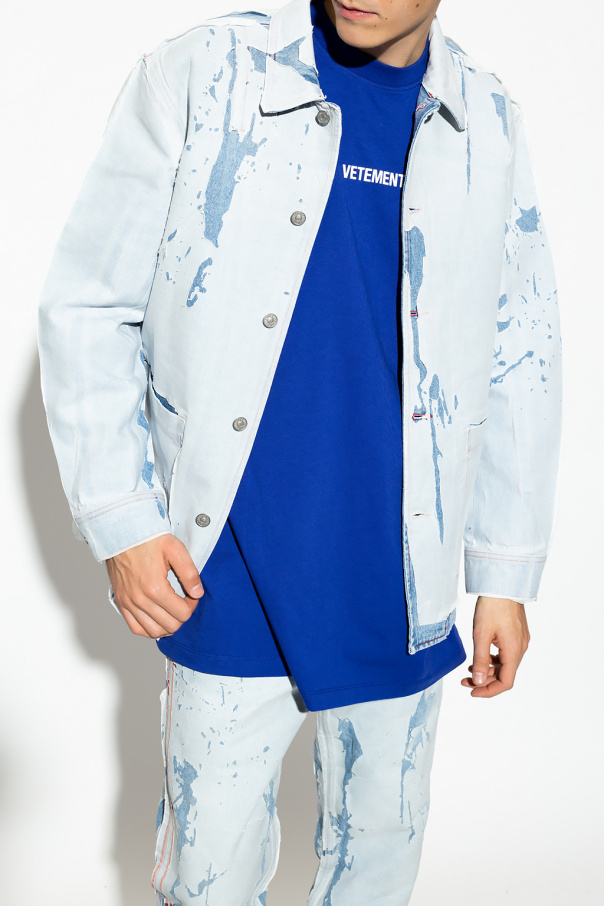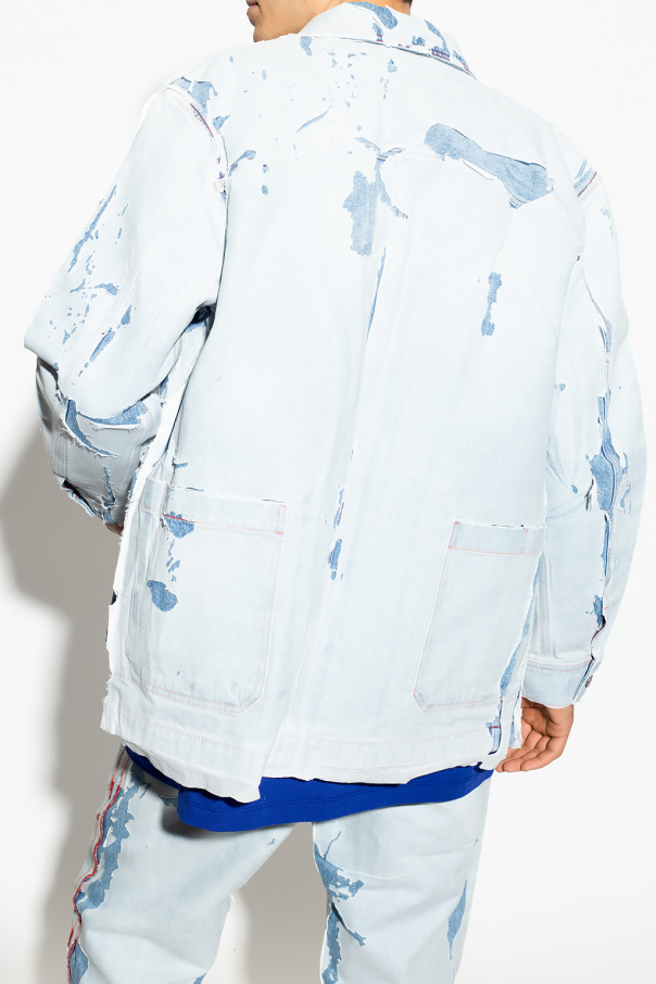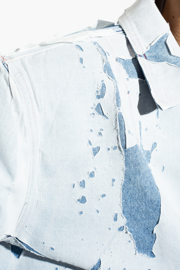 Light blue denim shirt from Diesel. Fastened with buttons, this style features an innovative peel-off effect made with lightweight organza fabric. It is complete with six patch pockets (two on the front and four at the back) and long sleeves with button cuffs.